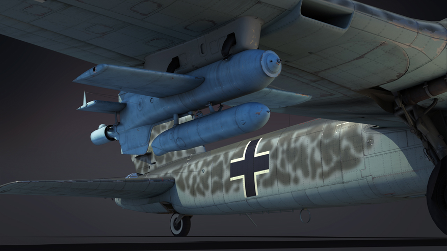 Новая премиумная новинка будет обладать управляемыми крылатыми бомбами Hs 293. Данные бомбы были произведены КБ «Хеншель» в 1939 году на базе 500 килограммовой SC500. Главной задачей данной бомбы был сброс на небольшой высоте с возможностью недолета до корабельных ПВО врага. После сброса бомба могла пролететь 8км (при сбросе с высоты 1300-1400 метров), ракетный ускоритель еще 10 секунд разгонял бомбу до 190 км/ч (при скорости носителя около 360 км/ч, то есть итоговая скорость бомбы могла достигать внушительные 550 км/ч), далее бомба направляется по радиоуправлению на цель атаки.