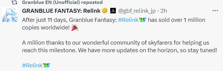 Granblue Fantasy: Relink достигла показателя в 1 миллион проданных копий за 11 дней