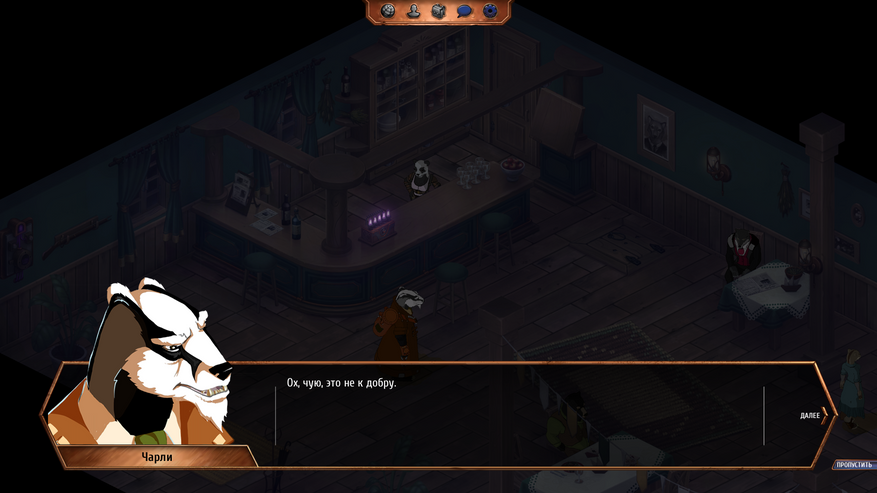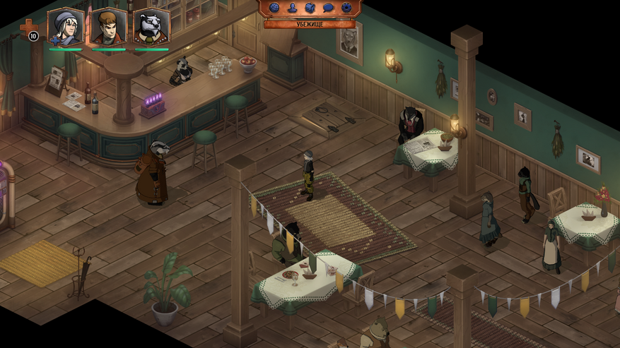 Чем игра привлекала еще в трейлерах — это без сомнения стиль и обещания по сценарию. Персонажи, локации прорисованы с большой глубиной, снабжены большим количеством ламповых текстовых пояснений, чтобы вы получали двойное удовольствие от декораций и от текста. Разработчики явно вдохновлялись японским стилем и нарративным дизайном. Сочетание декораций и музыки возвращает во времена Арканума, когда стоять и любоваться интерьером под музыку было куда приятнее чем перемещаться по нему. К сожалению, если первое не вызывает никаких нареканий, то второе уже несколько сложнее, поскольку сценаристы видимо не выдержали темп. Задали большую глубину повествованию, но проиграли на его оформлении.