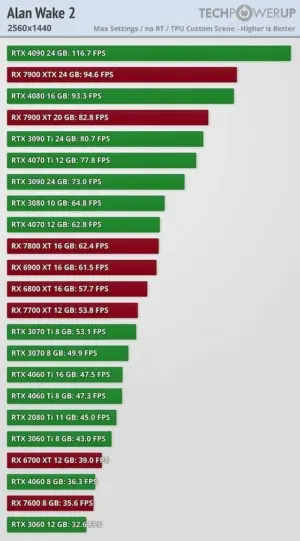 Помимо блогеров работу игры оценило издание TechPowerUp. Они провели тесты на разных видеокартах с максимальными настройками графики и поделились изображениями этих тестов.