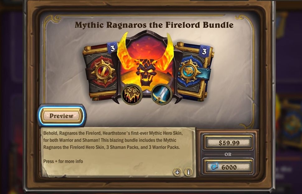 Справедливости ради, набор Мифический Рагнарос Повелитель Огня — это полностью анимированный 3D-скин, и единственный, который могут использовать два класса: Воин и Шаман. В набор также входят три набора карт Шамана и три набора Воина. Технически, да, это несколько снижает цену на скин, в том смысле, что если вы хотите купить эти наборы по отдельности, вам придется за них заплатить. Но для большинства игроков Hearthstone это, похоже, просто добавило раздражения.