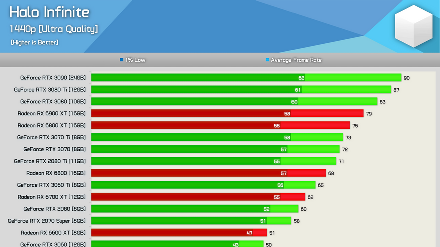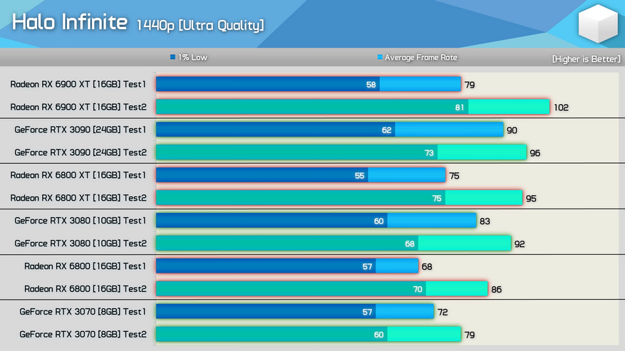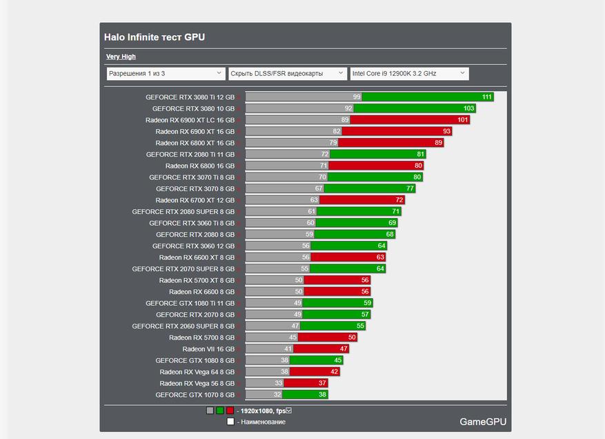 На прошлой неделе сразу несколько изданий опубликовали сравнительные результаты тестирования современных и не очень видеокарт от Nvidia и AMD в игре Halo Infinite. Результаты различных изданий в силу разных методик тестирования зачастую отличаются друг от друга, но редко оказываются настолько противоречивыми, как в Halo Infinite.