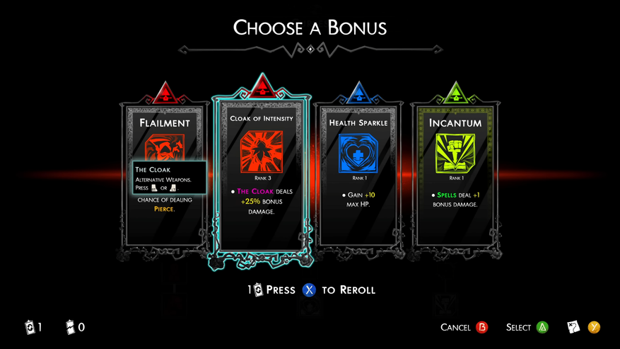 Но ничего из этого не даёт нам желания начинать забеги заново. Мы можем прокачивать некоторые постоянные детали, но особого бонуса это не даёт. Разделить прокачки можно на два типа — постоянные улучшения и увеличения пула предметов, которые мы можем получить во время забега. И в игре больший упор идёт именно на второй тип, мы не получим достаточно силы обычными «пассивными» улучшениями, нужно находить новое оружие и уже с ним уничтожать врагов.В самом мире ничего лишнего, чем дальше проходим — тем сильнее становимся. Проклятия, как бы «плохо» не звучало, дают нам бонусы при прохождении. Например оружие получает шанс вызывать кровотечение, или мы восстанавливаем здоровье после боссов.