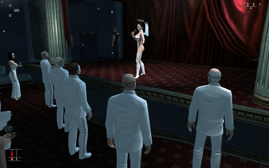 Немного выше я пожурил Hitman: Absolution за неуместный фансервис. Полагаю, самое время похвалить Blood Money за уместный. Разработчики игры отнюдь не стесняются приемов подчеркивающих женскую красоту, но создают для них адекватную обстановку. Роковые красотки используют откровенные наряды для завершения образа дам с заниженной планкой социальной ответственности(с) с целью проникновения на званые вечера господ с полным ее отсутствием. Однако в бой они пойдут в тех же карнавальных костюмах, что и прочие бойцы на локации. Никаких полевых униформ БДСМ-монахинь.