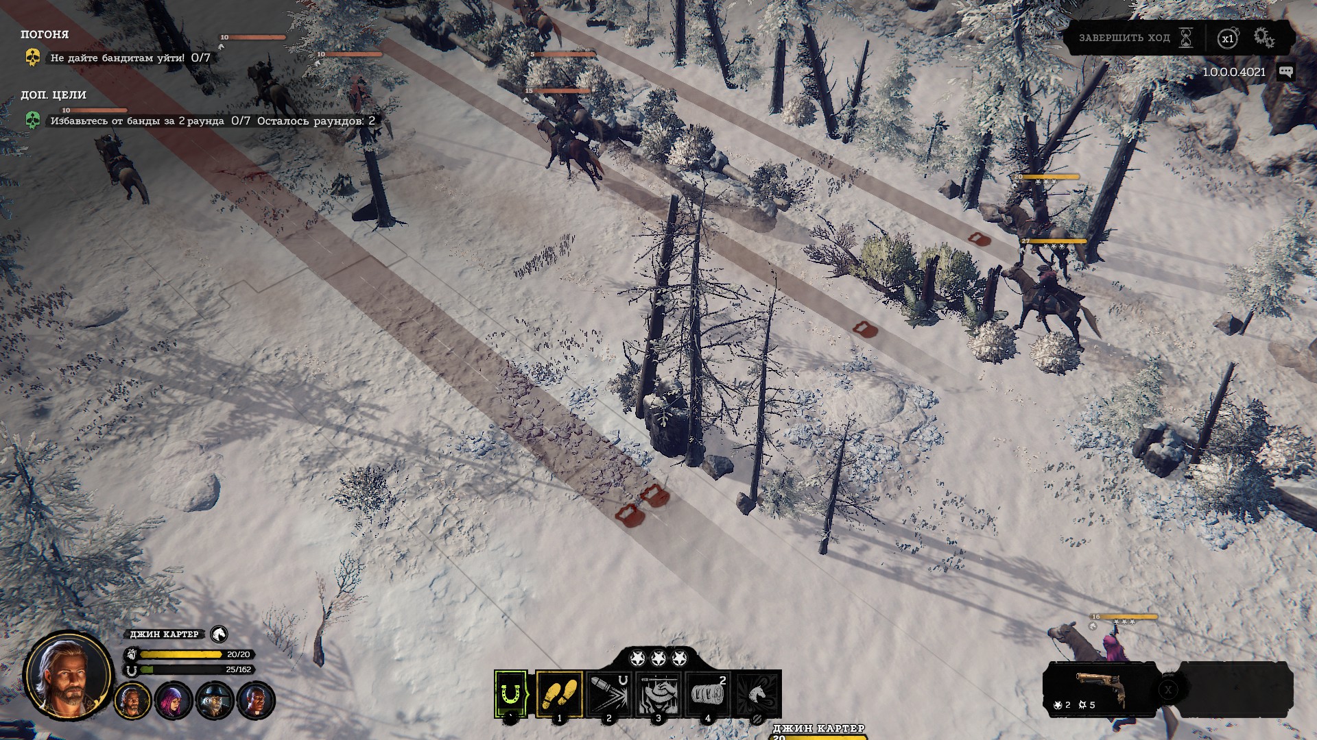 Теперь уже можно переходить непосредственно к боевой системе. Основной фишкой проекта является так называемая система “бравады”. Представляет она из себя бафф, который даётся персонажу после убийства противника, он восполняет всю шкалу очков действия и активирует некоторые пассивки. По итогу получается, что противники становятся инструментом для успешного выполнения миссий, но и тут не всё так просто, ибо у проекта есть проблема с самими противниками. Зачастую на миссиях игрока заваливают тоннами мяса. Вполне обычный расклад, когда твой отряд из четырёх человек противостоит отряду из 40-50. Хоть противники имеют вариации по типу (взрывники, снайперы, вендиго, маги и т.д.) и виду (индейцы, нежить, люди), но из-за огромного их количества на уровнях, бои к концу игры начинают напрягать всё сильнее и сильнее. Хватает и мелких недоработок, как пример – союзники не могут лечь друг друга в бою.