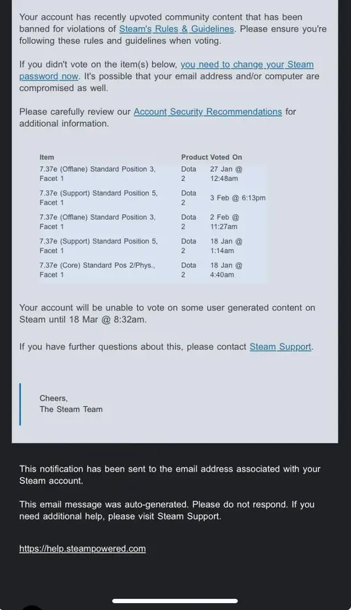 Предполагается, что эти баны могли быть вызваны системой, предназначенной для борьбы с искусственным накручиванием лайков в разделе сообщества Steam или для пометки контента, содержащего потенциальные фишинговые ссылки. Однако точная причина остается неясной.