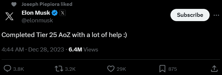 На днях он решил устроить себе новый вызов и стать не просто геймером, а настоящим хардкорщиком. Лучшим способом выражения для этого по убеждениям Маска являлось получение достижения за закрытие самого жесткого подземелья в Diablo 4 на высшем уровне сложности — «Бойни Зира».