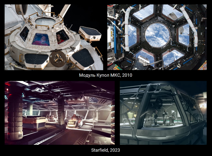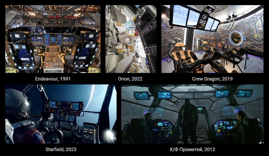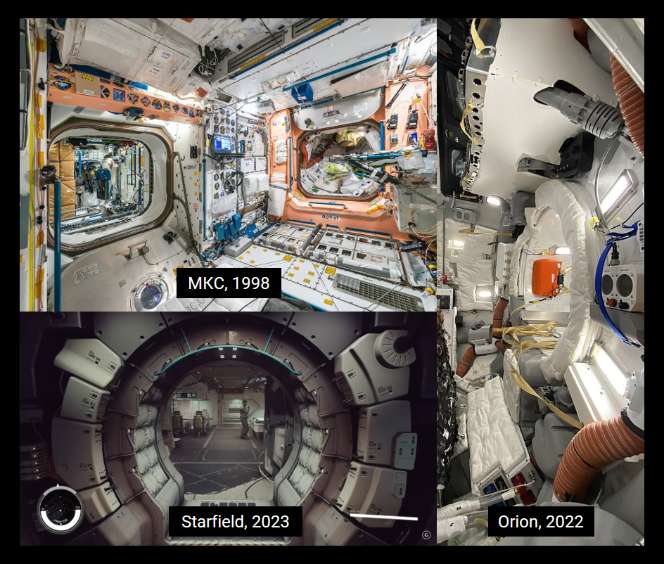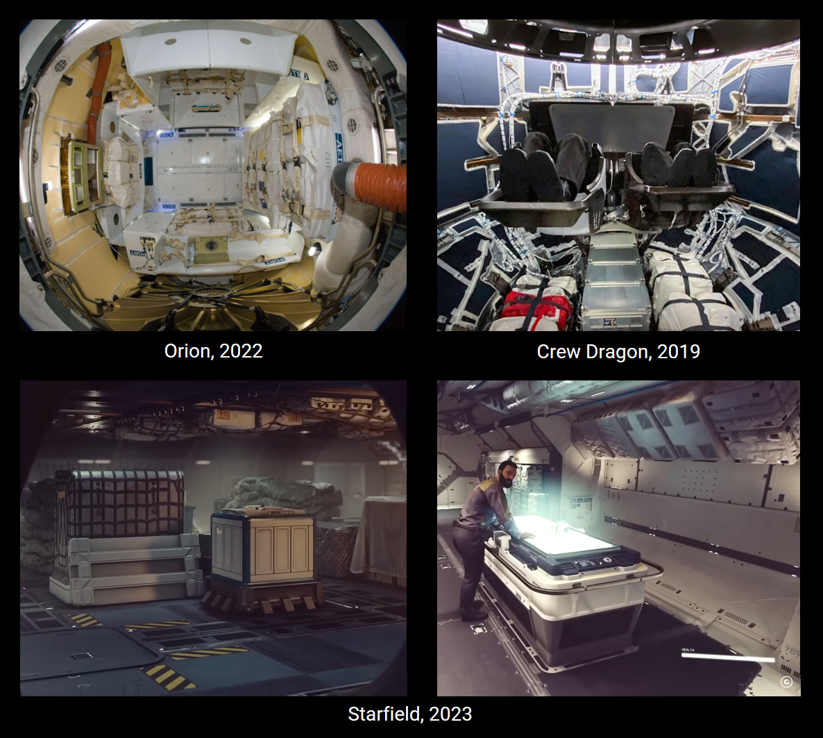 Мостик пилота в показанных роликах, за исключением панелей управления, не имеет не чего общего проектами NASA, как ранее реализованными, так и перспективными. В современной и перспективной космонавтике, площадь иллюминаторов минимальна. В кораблях Старфилд наоборот, мостики напоминают обзорные площадки. Похожий подход был продемонстрирован в фильме Прометей 2012 года.