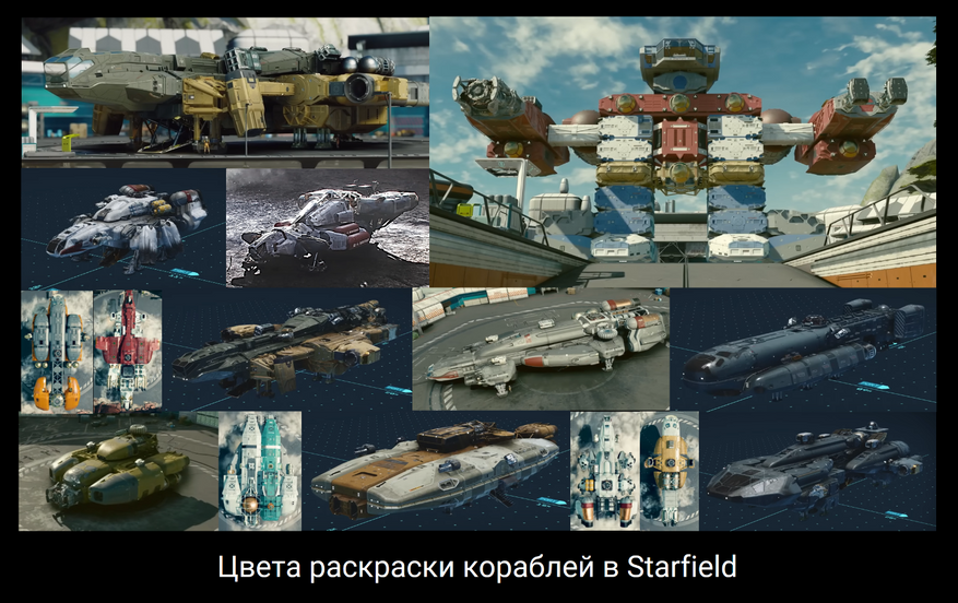 Звёздные корабли показанные в ролике Starfield, полностью соответствуют этой палитре