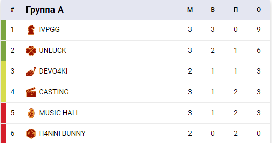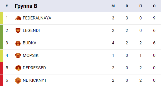 В группе B также есть аутсайдеры — DEPRESSED KIDS и NE KICKNYT, которые не смогли выиграть ни одной игры.
