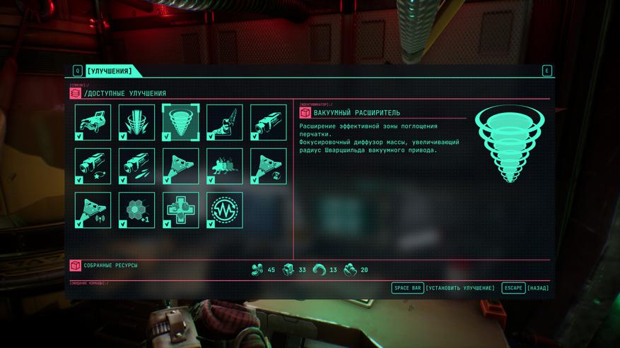 Что до прокачки, самые полезные улучшения, не связанные с сюжетом, доступны сразу: ускорение бега и расширение зоны всасывания перчатки — вот что мне показалось наиболее полезным. Потому что ближе к середине-концу игры, когда грязи становится слишком много, уборка начинает немного утомлять, и эти улучшения спасают. Хотя, не спорю, в очистке планеты от грязи пылесосом есть что-то умиротворяющее.