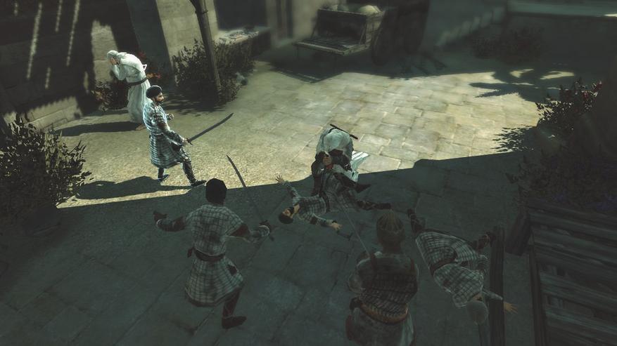 Напоминает серию Hitman, и стэлс — одна из тех вещей, за которую и полюбили Assassin’s Creed. Только вместо костюма-тройки, наш главный герой одевает робу с белым капюшоном, и способов разобраться с целью у него не такое великое множество. А вернее, их всего два — нанести удар скрытно, или в открытом бою.