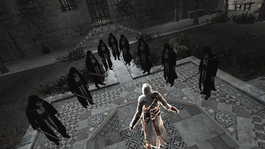 Перепройдя первую часть бессчётное количество раз, только в последний я решился на «hud-less run». Таким термином называется прохождение игры без интерфейса и карты. Это вызывало дискомфорт, потому что по началу, подобно Альтаиру, я не хотел слушать и видеть всё, что происходит вокруг.