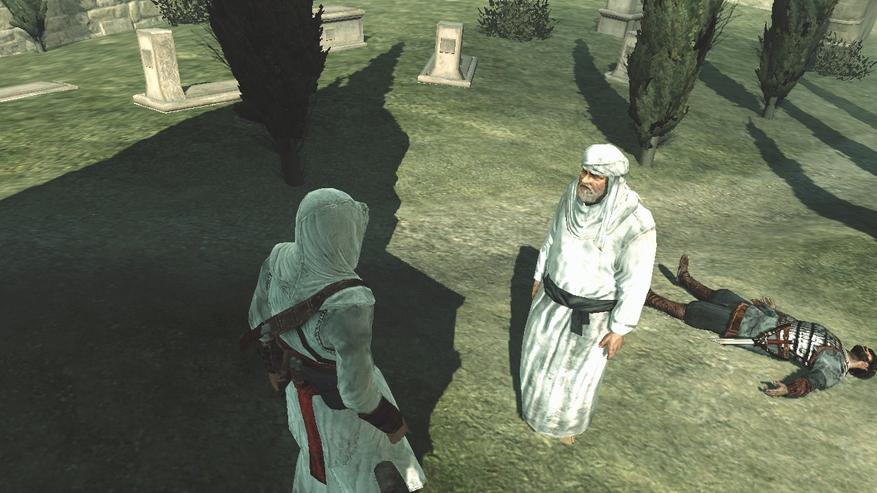 Из написаного выше, можно понять, что игра не просто так называется «Assassin’s Creed». Это не красивое и броское наименование, которое будут сгребать с полок. На протяжении всего сюжета, Альтаир пересматривает свой взгляд на догмы Братства, понимает их философию.