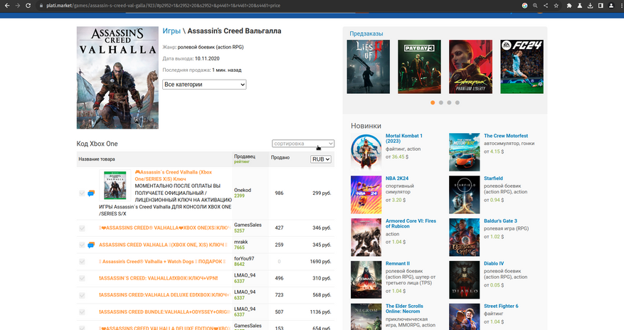 2. Вводим название желаемой игры. В моём случае это Assassin's Creed Valhalla.