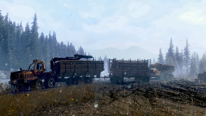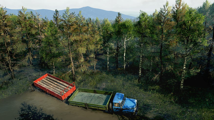 Официальные разработчики игры не могут позволить себе такие вольности, но это не значит, что в игре нет ничего уникального. Во-первых, уже упомянутый выше Caterpillar 745С. Он умело справляется с перевозкой срубленных деревьев, если вы сможете обуздать его «переломную» раму.