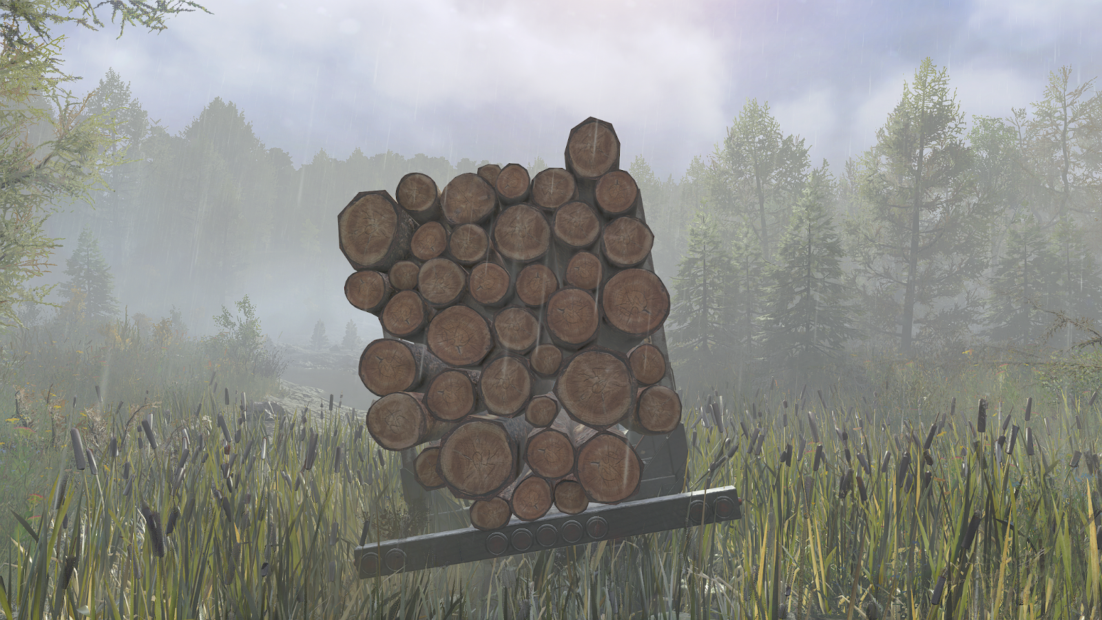 Есть и совсем особенные прицепы, которые создают безлимитные брёвна, избавляя от необходимости раскладывать их в прицепы, полуприцепы и грузить по 3 штуки. Просто грузим в точке безлимитной погрузки, подъезжаем в нужное место, жмём «распаковать» и получаем 64 бревна. Удобно, но довольно читерски.