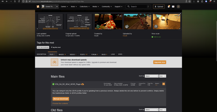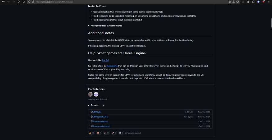 2. Скачиваем инжектор UEVR, модификацию 6DOF motion controls VR for San Andreas и SteamVR.