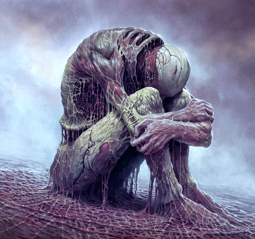 В процессе прохождения игры Scorn я задался вопросом — какие еще есть материалы по данной игре. Оказалось, что разработчики игры выпустили артбук с красочными иллюстрациями идей, набросков и всего прочего, что не попало в игру. Как отмечают многие блогеры и обзорщики — в артбуке материала больше, чем в самой игре, и он интереснее, чем сама игра. Кроме того — игра ничего не объясняет, там никто не говорит, никто из персонажей не разговаривает, нет и закадрового голоса. Даже нет никакого текстового описания сюжета и сходу непонятно, где мы оказались, что тут происходит и в чем суть.