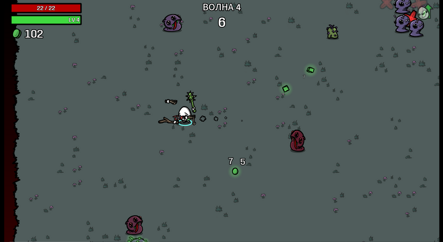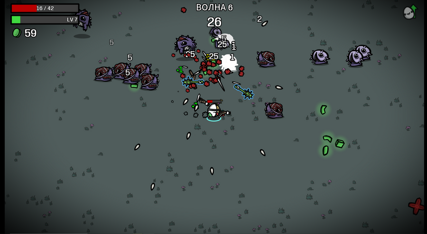 Отсутствию разнообразия потакают одинаковые волны, которые ничем не отличаются от забега к забегу. Единственное, что правда помогает хоть немного, так это смена сложности, которая вводит в игру новые виды врагов. К слову, именно различных врагов в Brotato хватает, поведение которых заметно отличается.