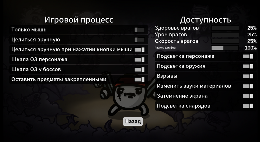 Помимо режимов сложности в настройках есть отдельные ползунки доступности, где можно как усложнить себе жизнь, так и упростить до полного истребления всего на экране без особого труда даже на последней возможной сложности. Благодаря чему игру можно собирать под себя как удобно и под любой вкус.