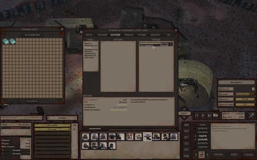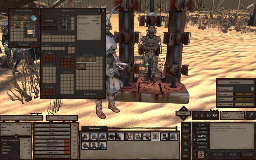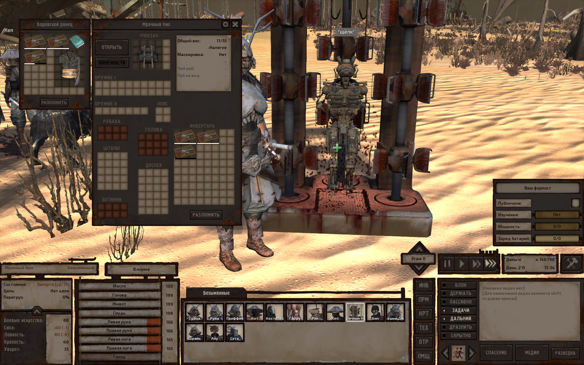 Также игра просто изобилует различными «пожирателями времени»: микроменеджмент, беготня по карте (частенько ради пары аптечек или еды), прокачке статов и навыков, строительству и крафту, добыче руды, отдыху для полного восстановления. Да, это добавляет игре своеобразной атмосферы и медитативности, но далеко не каждый имеет столько свободного времени. С другой стороны если это приносит удовольствие и в какой-то степени отвлекает от насущных дел и расслабляет, то почему бы и нет. Не самая худшая форма досуга в конце концов.
