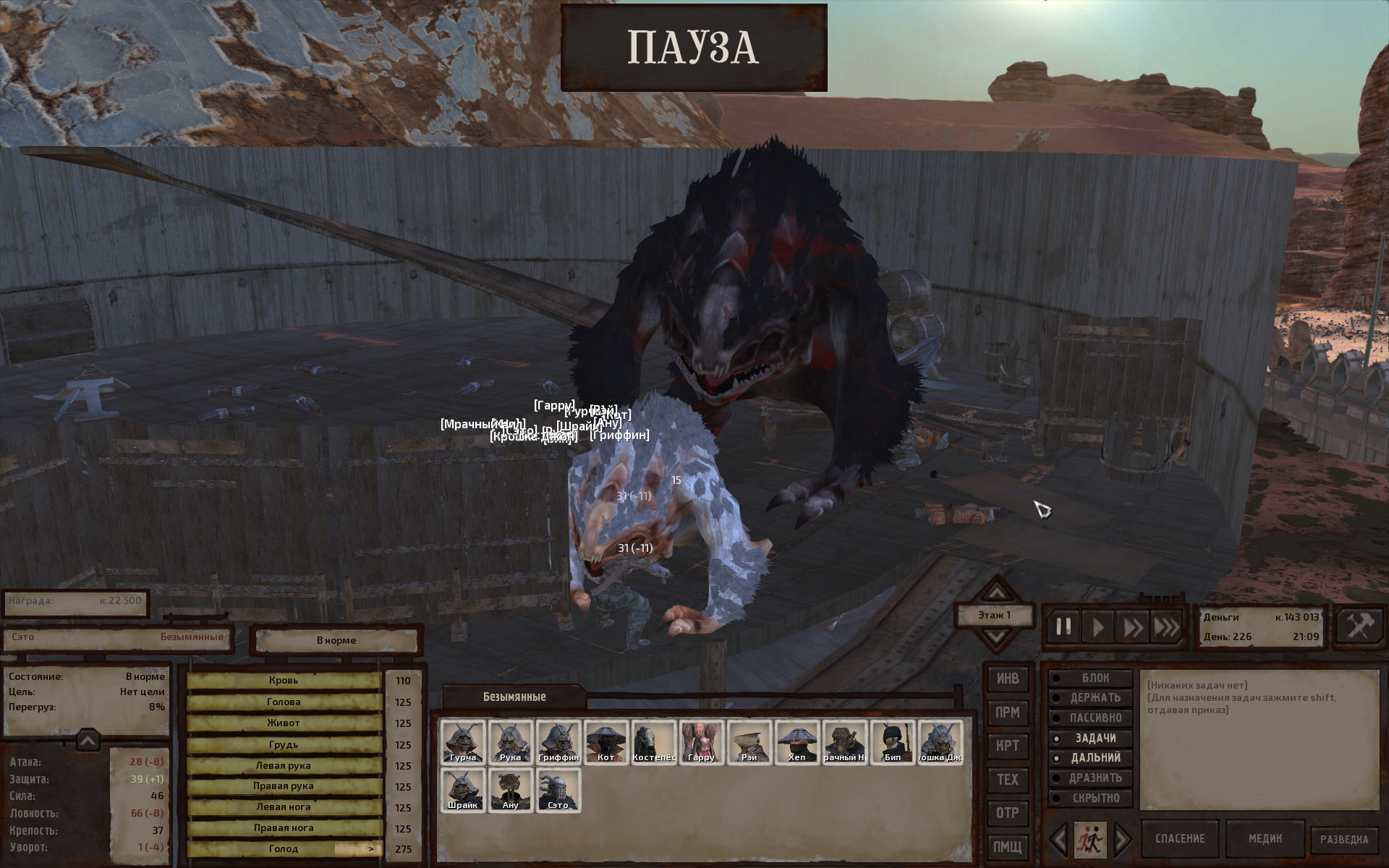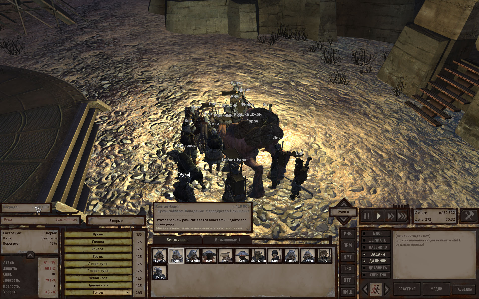 Главная изюминка Kenshi — это то, что никогда не знаешь какая опасность поджидает игрока буквально где угодно. Я прекрасно понимаю, что игра так изначально и задумывалась. Игрок здесь всегда должен преодолевать трудности, и через поражения становится сильнее. Вот только не совсем понятно откуда тут столько бандитов, людоедов и работорговцев, и каким способом так расплодилась местная фауна. Я понимаю, что это некая игровая условность. Также после устранения многих лидеров фракций, их нападения значительно снижаются. Но когда после расправы с очередной кучкой бандитов, тут же появляются работорговцы и начинают надевать на них кандалы. Да я их полутать то ещё не успел, а из них уже рабов делают. Подобные моменты довольно быстро начинают утомлять.