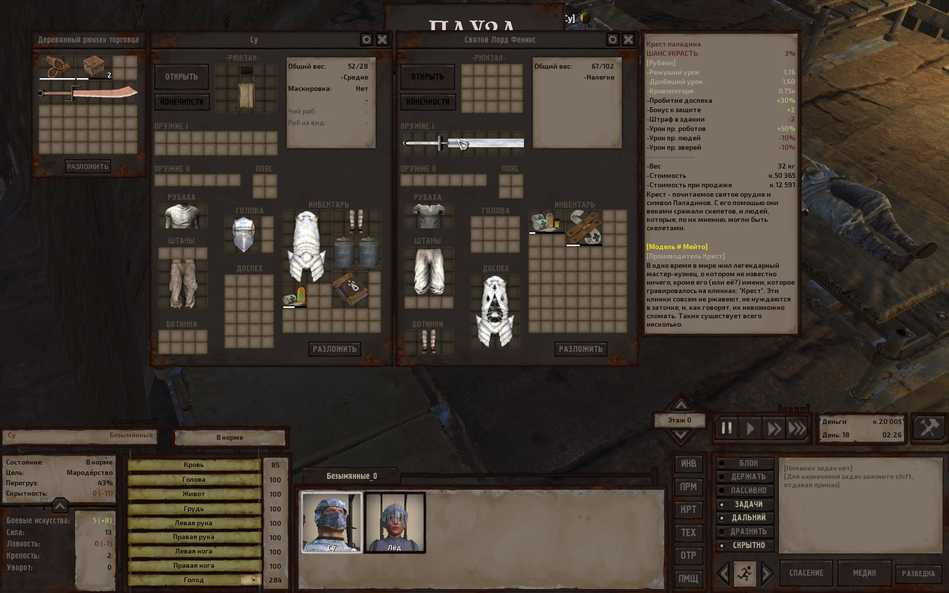 Что касается воровства, то это, наверное, самый лёгкий способ разжиться всем необходимым. Я так начал играть за святую нацию, и практически первым делом украл меч и доспехи у лорда Феникса. Просто подкрался, и где-то на третьей загрузке быстрого сохранения меч был у меня. И это с низким значением навыка и шансом кражи в 3%. Вообще играть второй раз, когда уже знаешь что и как здесь устроено, даже интереснее чем в первый. Но это во многих подобных играх. Kenshi тут явно не первопроходец.