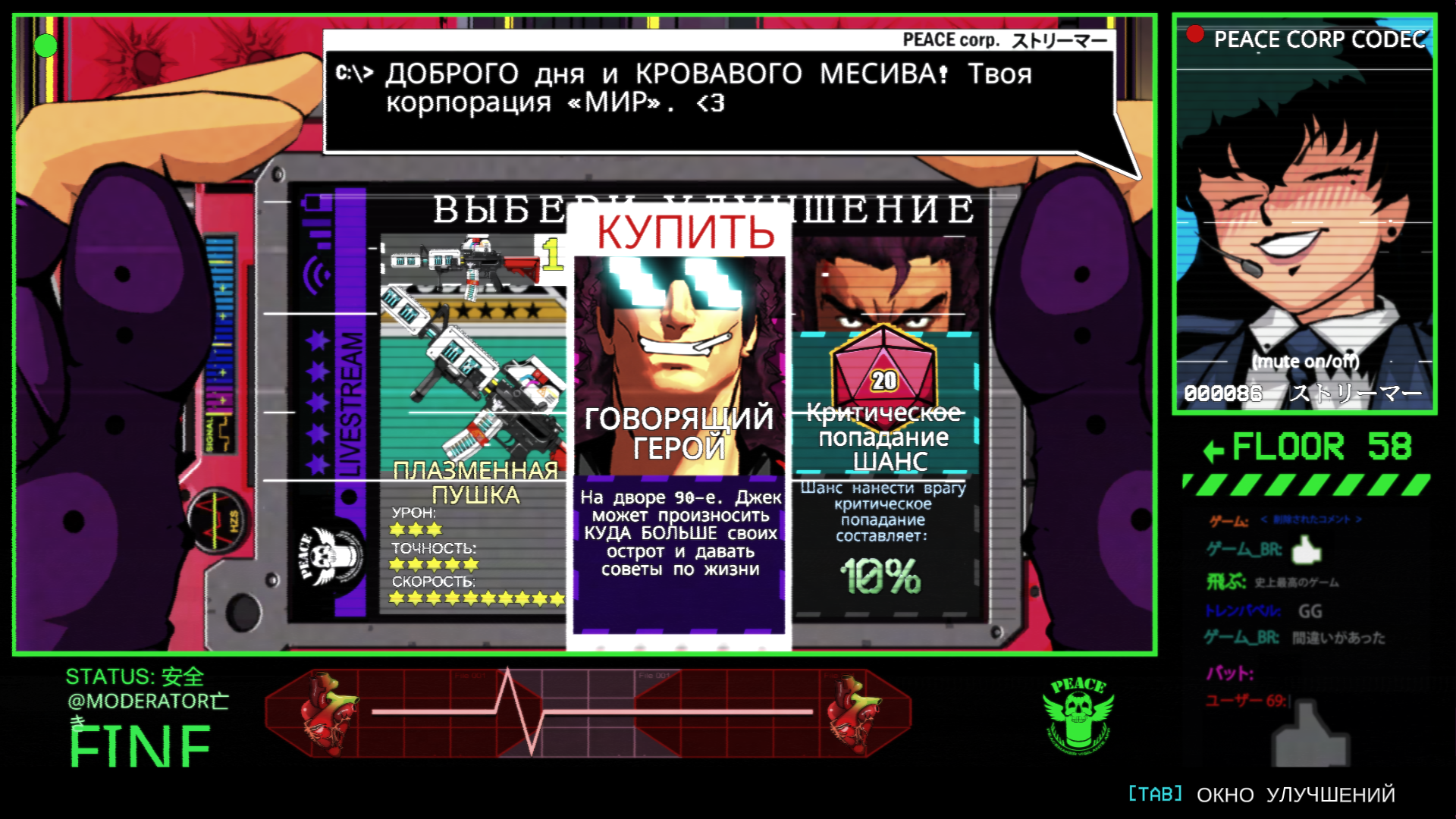 Более того, в игре есть предупреждение для людей, страдающих эпилепсией. Игра может понравиться и людям, испытывающим ностальгию по VHS, но оттолкнёт тех, кто не переносит, когда на экране происходит слишком много всего. Даже при выборе апгрейда на экране много посторонних элементов.