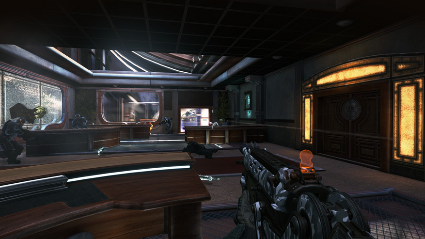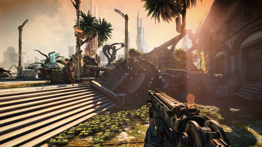 Другие же утверждают, что этот фильтр, напротив, подчёркивает атмосферу преимущественно пустынной планеты. Поиграв с настройками, благо можно переключать настройки без перезапуска игры, я пришёл к выводу, что оригинальная графика лучше. А ведь оригинальная игра вышла в 2011 году, а Bulletstorm: Full Clip Edition увидела свет в 2017 году.