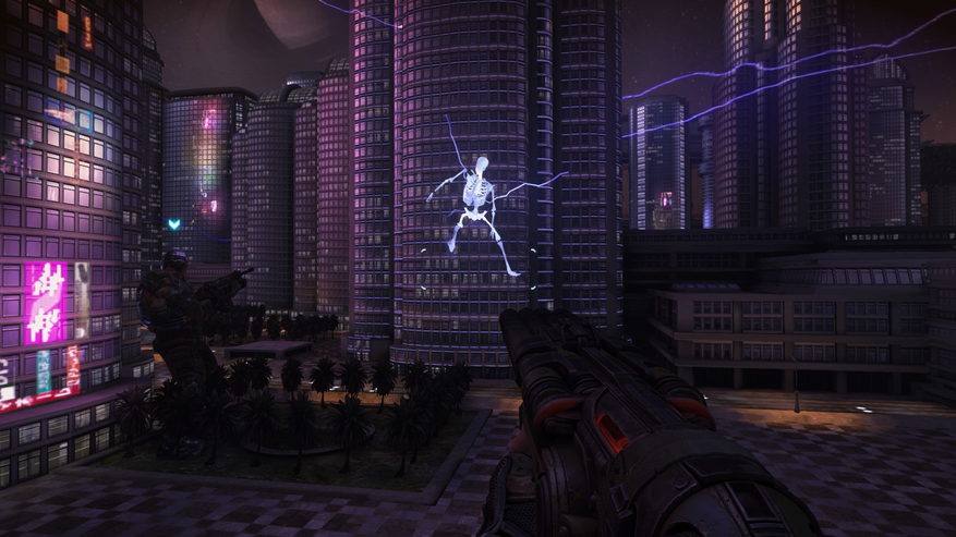 Но лично мне больше понравилась идея со снайперской винтовкой, пуля, выпущенная из которой, управляется самим игроком. К слову, за попадания в те или иные части тела, как и за устранение противников разными методами, на счёт игроку будет падать валюта, которая тратится для закупки патронов, нового оружия или улучшения старого. Немалую роль в игре сыграет энергический кнут.