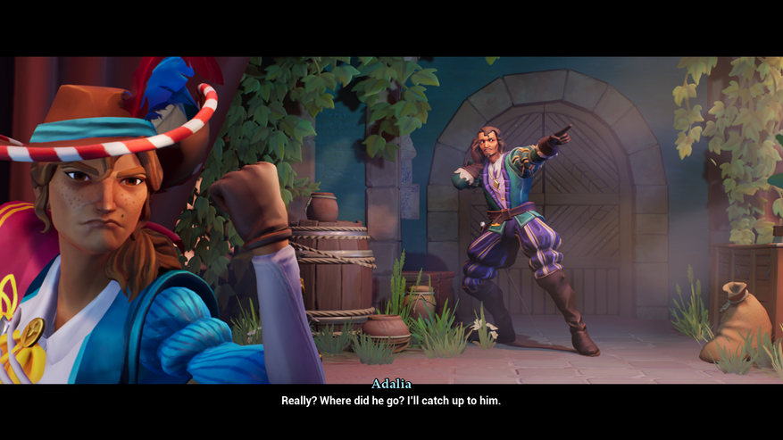 Играем мы за бойкую женщину Адалию средних лет, которая является здешним разбойником и народным героем. В общем-то на внешность — типичная испанка, ничего примечательного. Не понятно, Адалия де Воладор — это прозвище «Адалия летающая» или все-таки фамилия де Воладор. Она борется с Графом-Герцогом, с его злодеяниями, тиранией, наживой богатства и захвата земель. Здесь встречаются и другие персонажи — брат Адалии Алехандро, некий Эль Вигиланте и наша, де факто, девушка Заида. Диалоги как с солдатами, так и основными персонажами наполнены иронией, юмором. Их интересно слушать, где-то можно даже улыбнуться или посмеяться. Несмотря на отсутствие русской локализации, в игре интуитивно понятный и простой английский. В целом, если «забить» на сюжет, то отсутствие перевода вообще не повлияет на восприятие игры.