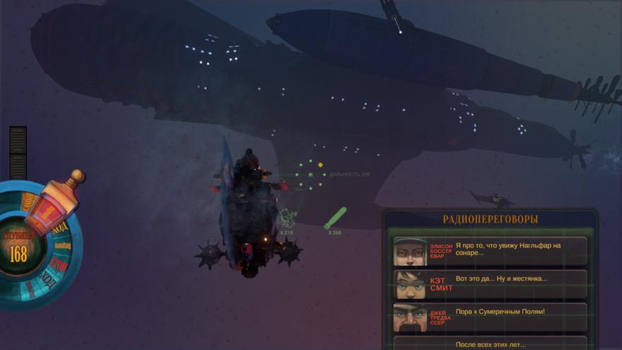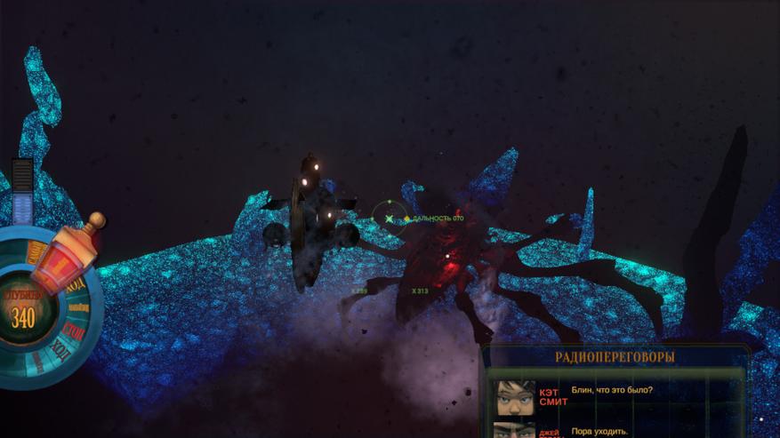 Но иногда игра преподносит нам сюрпризы. В первой локации мы должны изучить затонувший корабль. Но он оказывается боссом, т.к. в нем завелся гигантский рак-отшельник, переносящий на себе всю эту амбразуру, которая еще и палит по нам. Во второй появляется субмарина-призрак, люто ненавидящая нас и только нас, и активно пытающаяся уничтожить. Ну а в третьей локации так вообще безумие начинается!