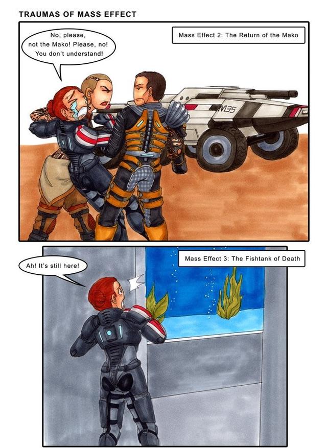 3. Очень субъективно. Лично я не понимаю как можно сравнивать сложного и словно отлитого из бронзы Ревана с галактическим Клинтом Иствудом Шепардом; возможность троллить красавицу-заучку Бастилу с неуклюжим флиртом с солдафонкой Эшли или по-голливудски пресноватой заучкой Лиарой; Малака, конфликт с которым выходит за рамки не только рассказанной истории, но охватывает все аспекты философии мира, с… как там звали антагониста первой части? Про боевое взаимодействие много можно сказать, но ограничусь лишь тем, что тактика в реальном времени — это до мелочей продуманная боевая механика и заменять ее нужно аналогичной по глубине. Была бы боевая механика МЕ противостоянием тактических групп с хорошим ии (вроде Хэйло), с продуманной рукопашной и биотикой — т.е. тем самым чем ее рисуют в игровых роликах и мультиках — критиковать бы ее было просто не за что. Колда с укрытиями — самое ленивое, самое неподходящее для ролевого отыгрыша решение, которое можно было только придумать.