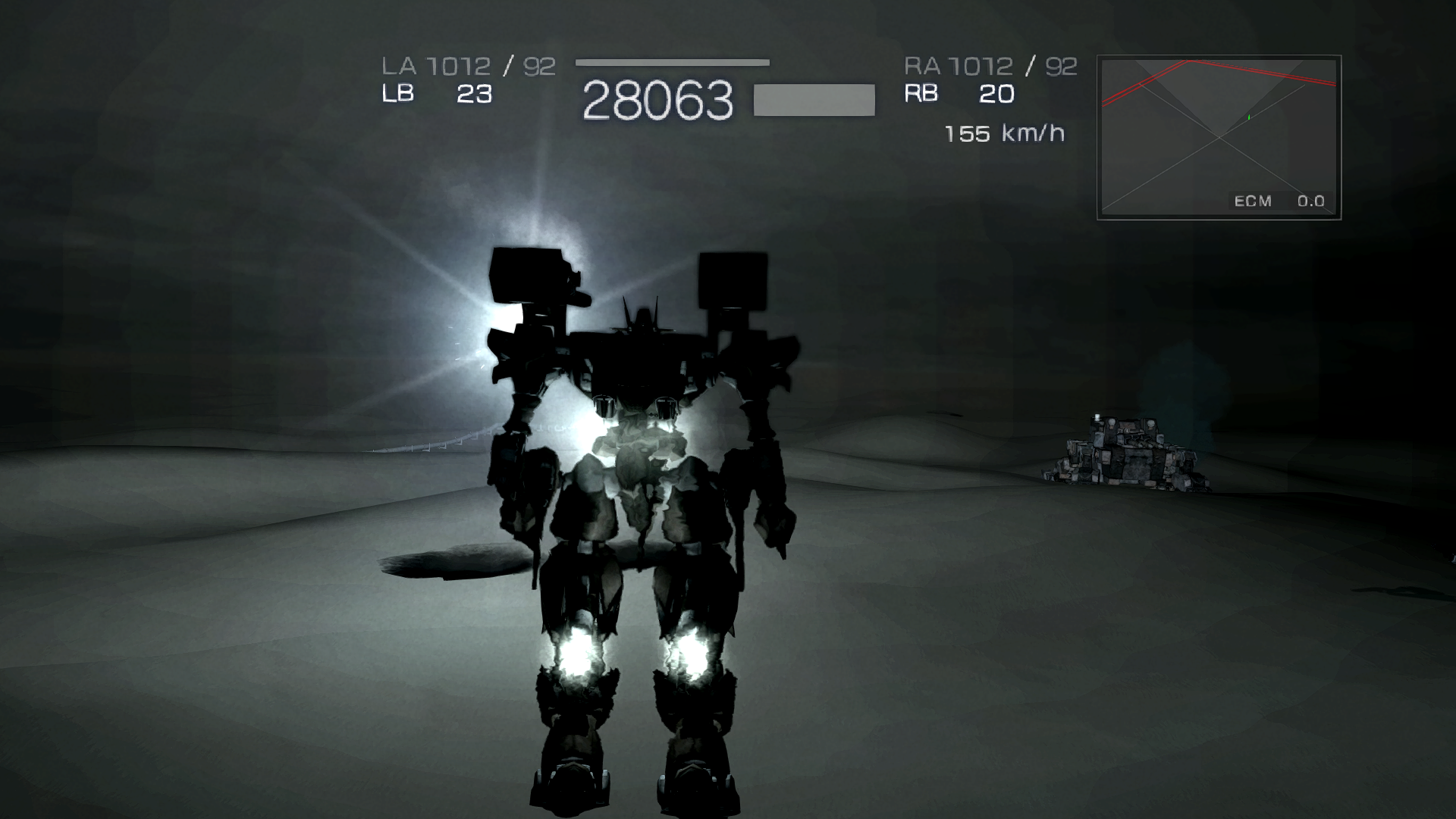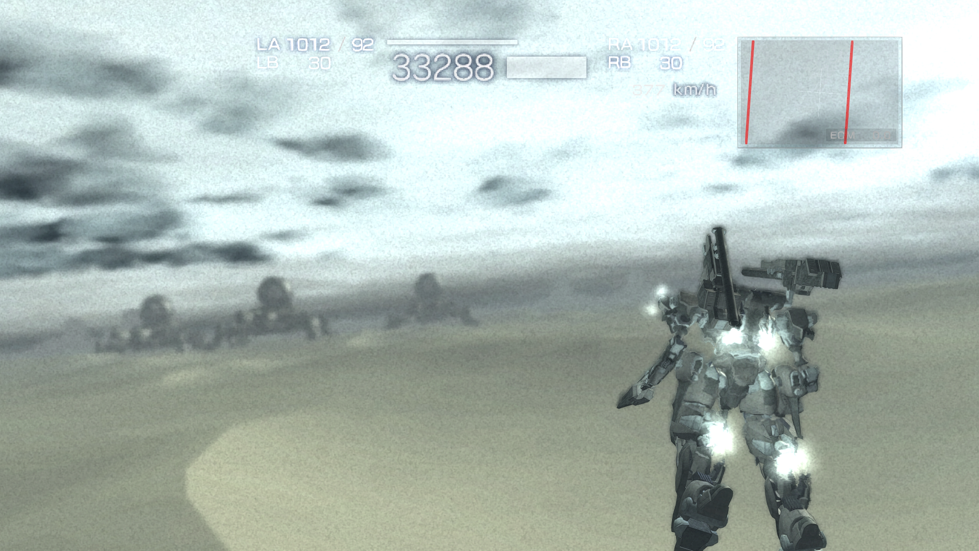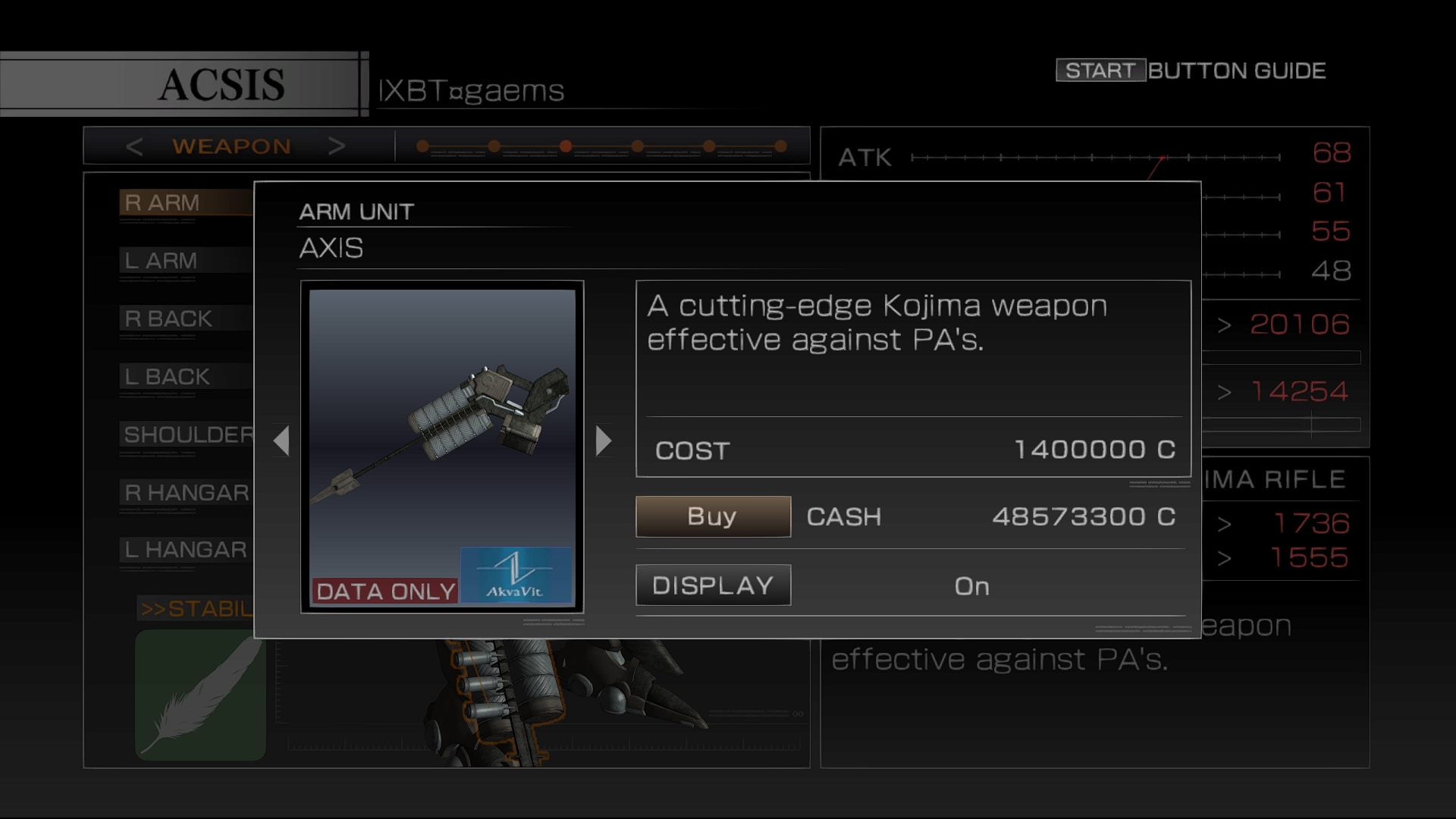 Сразу хочется выстрелить из Карасавы в голову тому, кто занимался дизайном меню кастомизации в этой игре. Оно не просто плохое, оно разработано как будто для искусственного интеллекта, а не человека. Можно потратить полчаса в поиске магазина новых запчастей, прежде чем сообразить, что экипировка, которая у вас уже есть и та, которую продает магазин находится В ОДНОМ МЕНЮ. Это как, это почему? Отличается магазинная часть маленькой пометочкой Data Only, что переводится как "Только Данные". Угадать, что это значит можно только после того, как вы эти данные экипируете, и попробуете выйти из меню, где с вас тут же потребуют деньги. Узнать сколько стоит деталь и купить ее отдельно можно только нажав на отдельную кнопку. Причем СПИСКА всех деталей магазина/гаража как в предыдущих играх, в меню нет, надо прокручивать детали по одной влево/вправо. Когда к концу игры список становится солидным, это превращается в настоящий кошмар. Не успели разработчики сделать человеческое меню или не захотели - неизвестно. После такого опыта тот факт, что самих деталей и оружия в игре не так уж и много, особенно по сравнению с предыдущей, не кажется таким уж недостатком. Если бы подобное меню было в Последнем Вороне, или даже For Answer, играть в них было бы невозможно. Привычной подсказки, разъясняющей что какие характеристики делают тоже нет, либо угадывайте, либо изучайте прикладным путем.