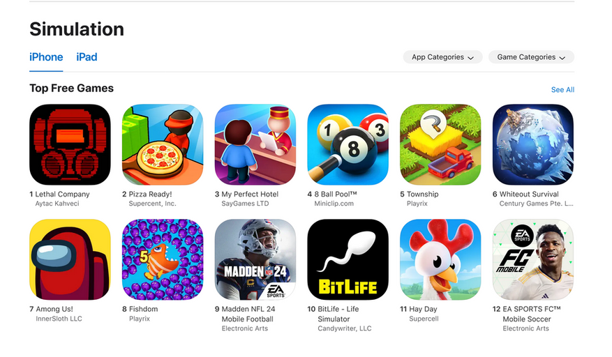 Внезапно, Lethal Company появилась в Google Play Market, а также стала доступна предрегистрация на iOS. Игра быстро поднималась в топах и стала самой популярной игрой AppStore в жанре симуляторов.