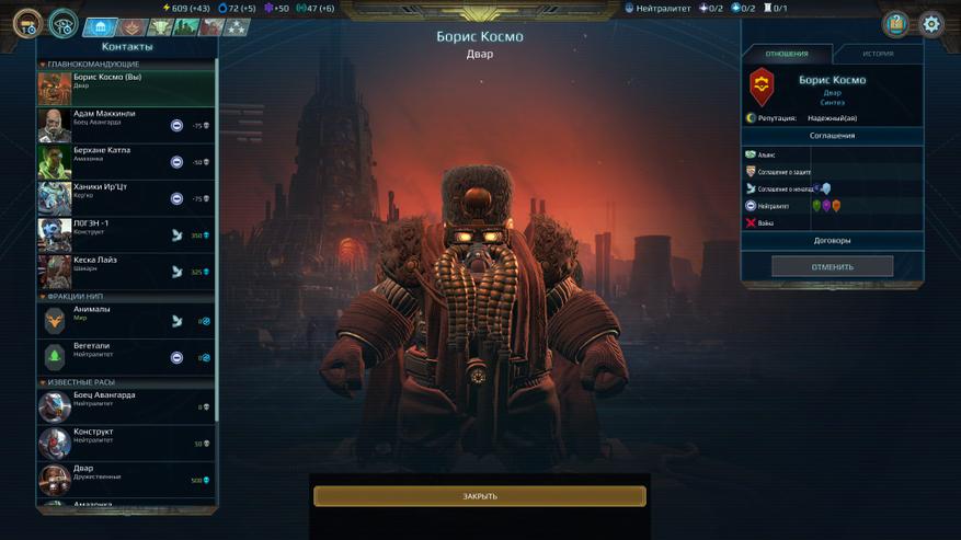 Увы, локальные дипломатические успехи не отменяли того факта, что на планете, похоже, начинала расцветать махровая дварофобия. Амазонка Барахне и лидер инсектодов Ханики ИрЦт отнеслись к Борису прохладно, а вышедший на связь (после встречи разведчиков) генерал армии авангарда Адам Маккинли начал общение, по сути, с оскорбления. Его «приветственная» речь привела к казус-белли, поводу для войны. Всего на один балл, но всё же...