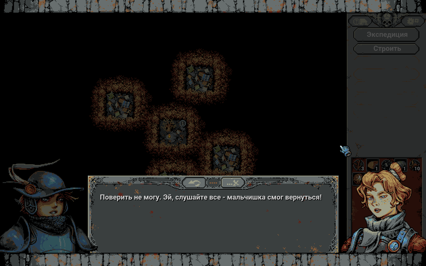 Но если с классами и билдами я разобрался довольно быстро, то вот по какой логике здесь падают те или иные ресурсы, я понять так и не смог. Энциклопедию я еще не открыл на тот момент. Ну пришлось искать ответы в интернете, и вот тут игра начала меня потихоньку разочаровывать. То есть большая часть экспедиций представляет из себя гринд определенных ресурсов для строительства базы. Здесь и колоду нужно подбирать под эти цели. Игра как бы намекает, что неплохо бы иметь несколько пресетов карт и снабжения для конкретных задач. Правда не настолько здесь увлекательный геймплей, чтобы ещё и гриндить. Я понимаю, что, допустим, надо несколько попыток для победы над боссом. Что для этого нужно подобрать карты и экипировку, грамотно развить персонажа и надеяться, что в этот раз повезет. Но чтобы пялиться на экран и ждать пока выпадет необходимый ресурс — это явно перебор. Если бы ресурсы хотя бы гарантированно падали, но нет. Спасибо, но наигрался я в свое время в корейские MMO. Вот только там то походы в «данж» были с друзьями и скорее поводом пообщаться, а здесь это какое-то самобичевание.