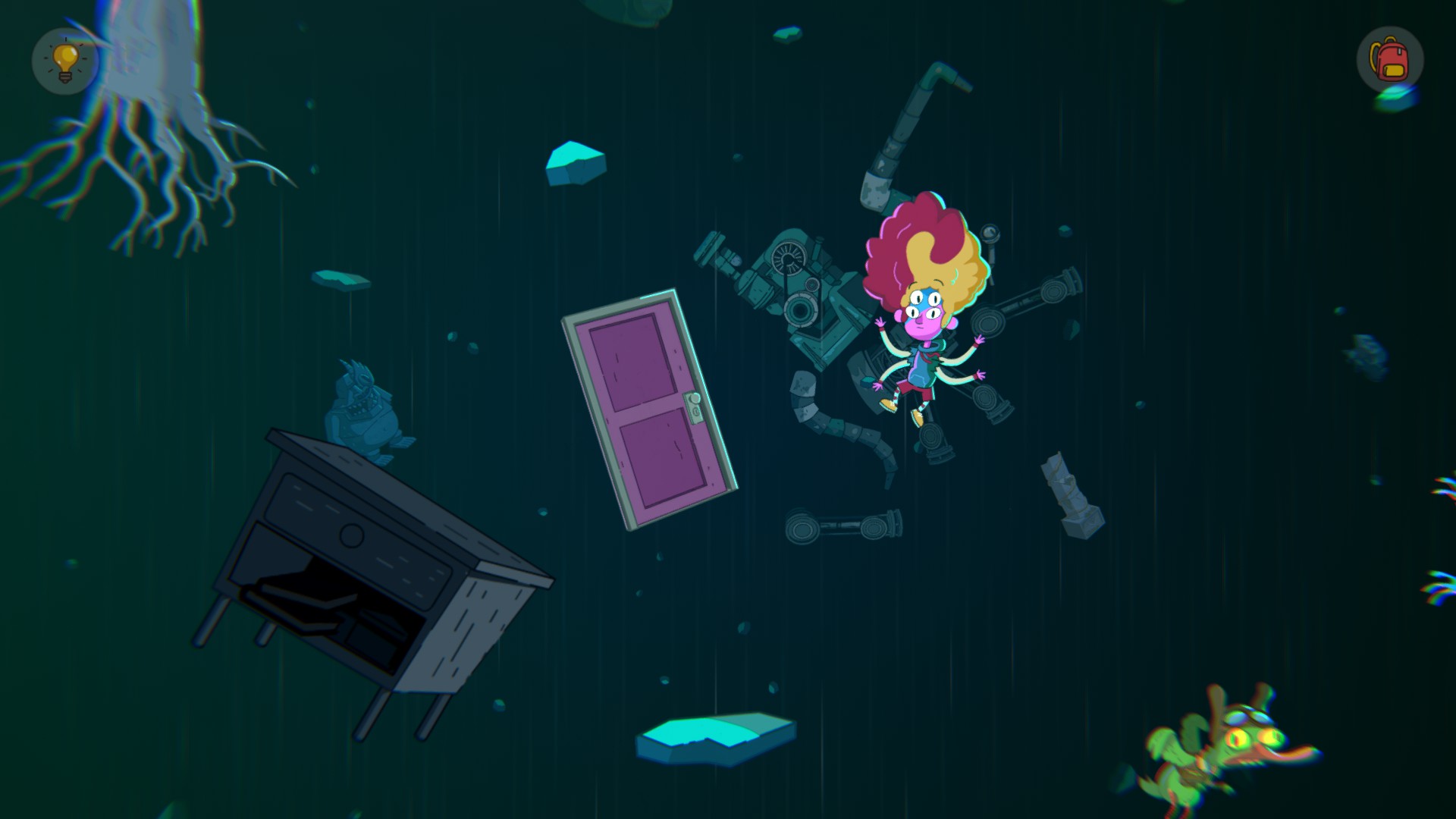 В игре отличный визуальный дизайн. Да, в отзывах не соврали, игра действительно очень похожа на Гравити Фоллз. Схож стиль анимации, цветовая гамма, "странность" окружающего мира и персонажей. Мелкие прикольные детали на задниках локаций, смешные микро-эпизоды, местами есть нестандартный юмор по отношению к вроде бы шаблонным персонажам. Игровой процесс заключается не просто в унылом тыкании предметов и головоломок. Зачастую взаимодействие с тем или иным предметом вознаграждает Вас очередным забавным моментом, поэтому изучать локации интересно. Когда игра увлекает, когда игра сама поощряет игрока играть в нее - это большой успех ее создателей.