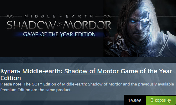 Хоть эта игра и недоступна в некоторых странах. На момент написания статьи цена Steam на Middle-earth: Shadow of Mordor Game of the Year Edition составляла 19,99 евро или 2093 рубля и 8 копеек. Что, несмотря на интересные механики и возврат в мир Средиземья, явный перебор. 600 рублей за основную игру и не больше.