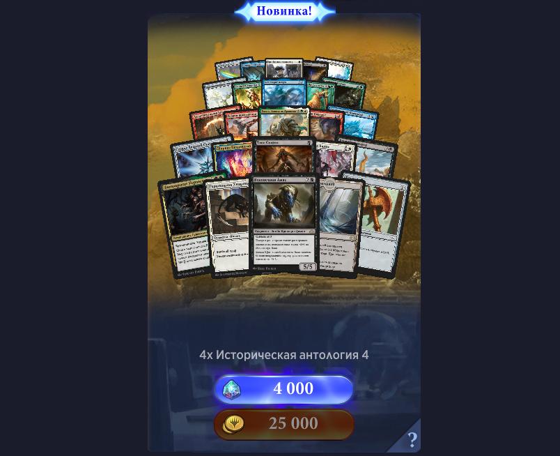 Я играю в MTG:Arena понемногу практически каждый день уже в течение двух лет и постоянно приобретаю все выходящие сезонные абонементы, в основном, за реальные деньги. Таким образом, у меня скопилась достаточно большая коллекция карт для полноценной игры в «историческом режиме». Но разработчикам «нужно больше золота», поэтому они стали продавать в определенный момент времени «исторические антологии» (наборы карт), в которых содержатся карты из сетов, выходивших ещё до появления MTG: Arena.