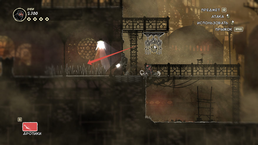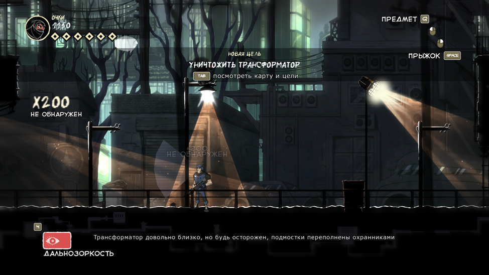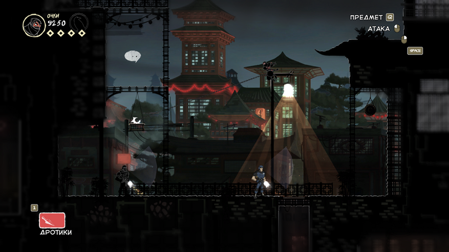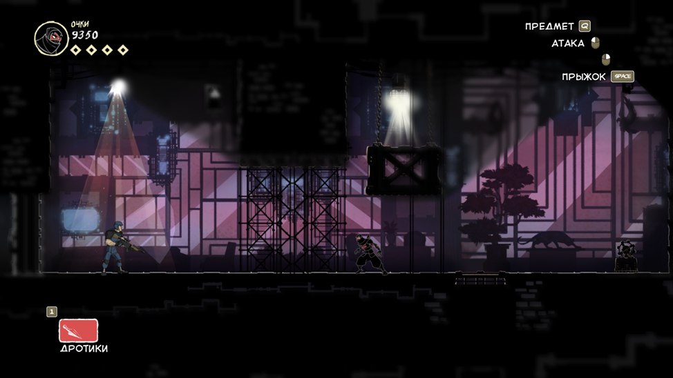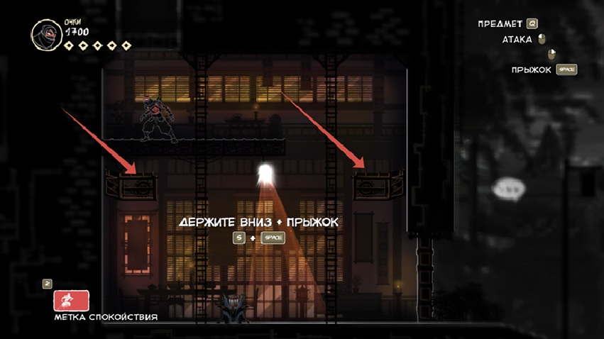 По моему личному мнению это стелс. Уберите его и всё произведение превратиться в платформер типа Марио, который кунаями и прыжками убивает врагов. Но мало просто так создать возможность прятаться от врагов и сказать «Вот у нас классная механика, ура игра великая». Очень важно сочетание других механик, которые дадут уникальный опыт. Вот их и рассмотрим: