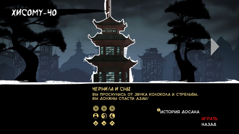 1 в старом японском стиле, по сути обучающий базовым механикам и знакомящий с примитивными врагами;