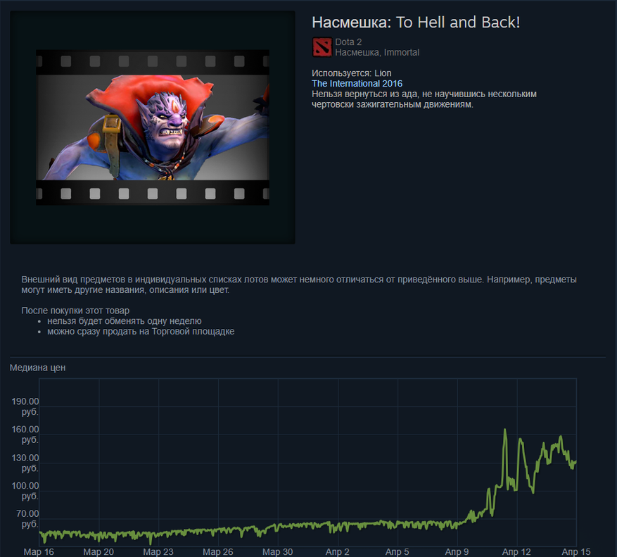 Из-за того, что игроки оценили этот мем, цена этого танца на торговой площадке выросла почти в три раза. А учитывая то, что этот герой является одним из самых часто выбираемых, подобные казусы теперь происходят довольно часто.