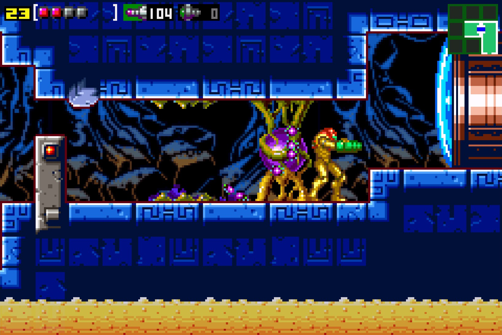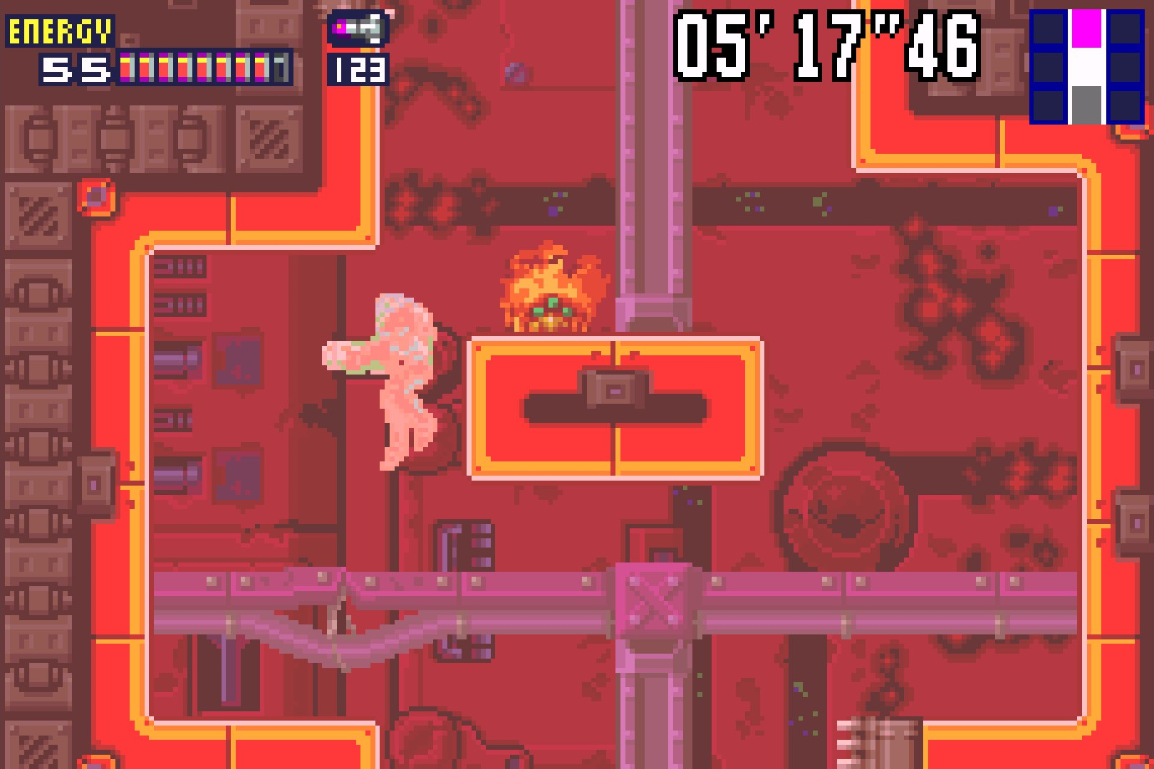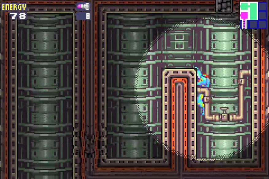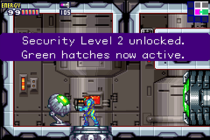 Перед выводами про скоростное прохождение. После первого пробега станут доступны таймер и статистика собранных предметов. Если начать новый забег, функции никуда не исчезнут, что помогает понять насколько успешно справляется игрок. Но создатели не стали так сильно раскидываться временем, как в третьей или во второй части, взяв за основу больше первый Metroid. На получение лучшей концовки даётся два часа, что сразу отметает какое-либо право на ошибку. Чтобы было легче собирать секреты, все сектора связаны таким образом, чтобы со всеми способностями на переходы между ними уходило меньше времени.