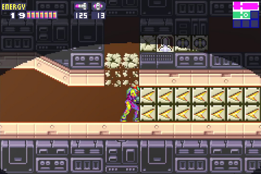 Super Metroid кардинально поменял подход не только к наполнению игр, но и к прохождению в целом. Нужда в боеприпасах ушла на второй план, уступив место решению загадок, поиску скрытых проходов и некоторым особенностям Самус: прыжку от стен и тому, что я буду дальше называть импульсом (на английском Shinespark). При беге героиня сохраняет полученную от скорости энергию и использует её для воздушного рывка. Используя эти способности, игрок собирает некоторые улучшения или пробирается в локаций раньше срока, тем самым освобождая себя от повторных посещений некоторых зон. С этой части появляется ещё одно дополнительное условия не столько для концовки, сколько для статистики: собрать как можно больше предметов.