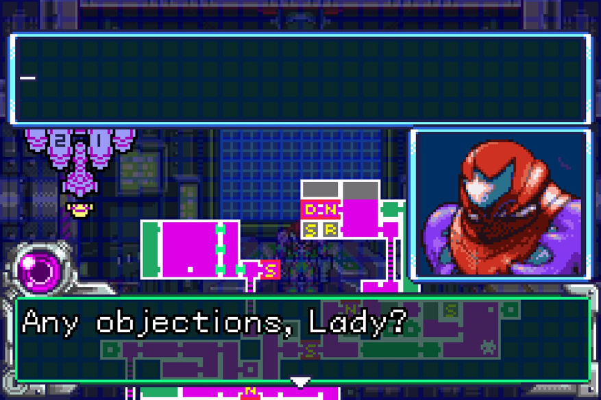 На фоне предыдущих игр Fusion сделала гигантский шаг в нарративе. Если не считать вступления Super Metroid и пары моментов из других частей, это первая игра, где игроку постепенно подают не только события на станции, но то, что творится в голове Самус. Кроме брифингов, нередко предлагают почитать мысли девушки, которые затрагивают и её отношение к случившемуся, и к своему новому “партнёру”, и о мировоззрении Самус в целом. Но основная тема на протяжении путешествия будет воспоминания о бывшем командире, Адам Малкович, и о его влиянии на характер и взгяды наёмницы.