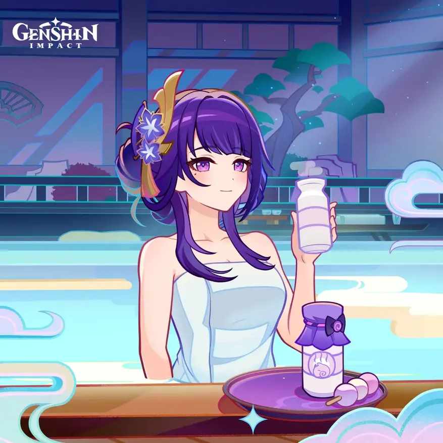 MiHoYo показала досуг девушек из Genshin Impact в бане на официальном арте