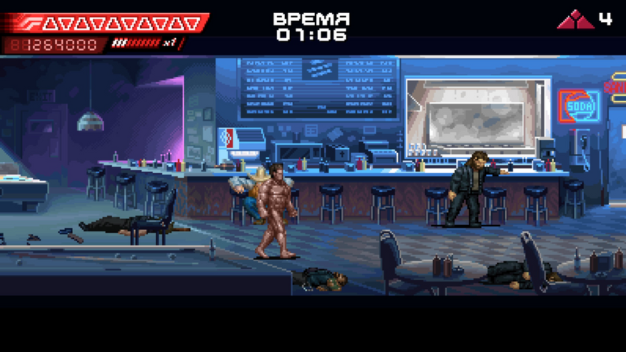 Ну, а Neon Inferno обойдётся в 710 рублей. Прохождение каждой из этих игр займёт в районе от двух до трёх часов, но при этом, как не сложно заметить, цены на них значительно ниже. Даже на Ninja Gaiden: Ragebound без саундтрека цена ниже. В идеале это творение по мотивам «Терминатора» должно стоить 250-300 рублей и не больше. Отчасти ситуацию спасает наличие семейного доступа, но лишь отчасти. Из-за того, что пришлось начать игру сначала, прохождение растянулось на два часа.