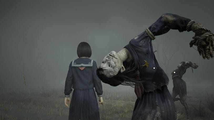 При этом есть несколько локаций, которые определенно точно стоит выделить из всей игры. Первая — заброшенная средняя школа, в которой училась Хинако. Вторая — поле с чучелами, отдающими эффектом зловещей долины. Вот эти места и атмосферные, и оригинальные, и временами пугающие. К сожалению, их не так много…